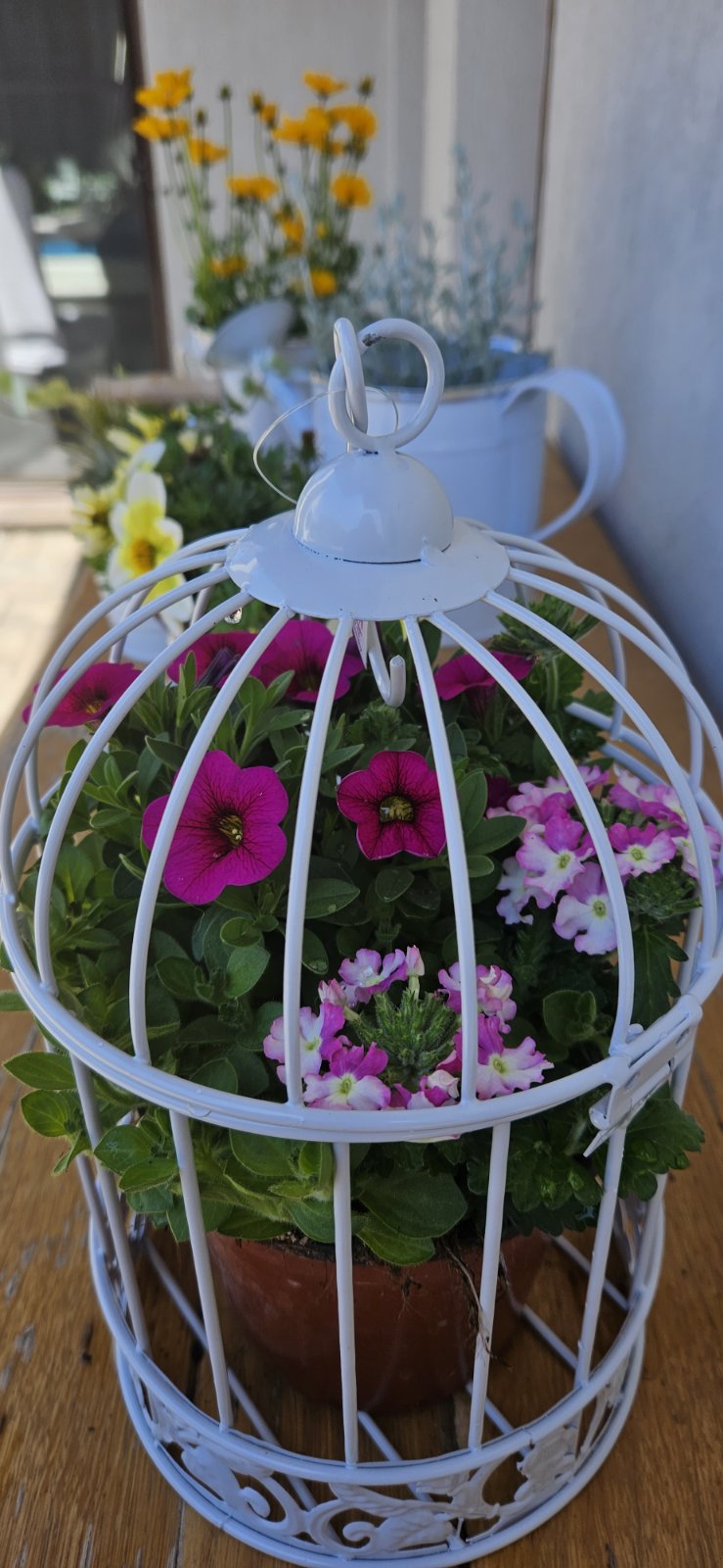 Această colivie cu chenar decorativ, este un obiect care poate înfrumuseța orice cameră. Designul simplu, discret, combinat cu florile plantelor conferă o notă de eleganță și creativitate.