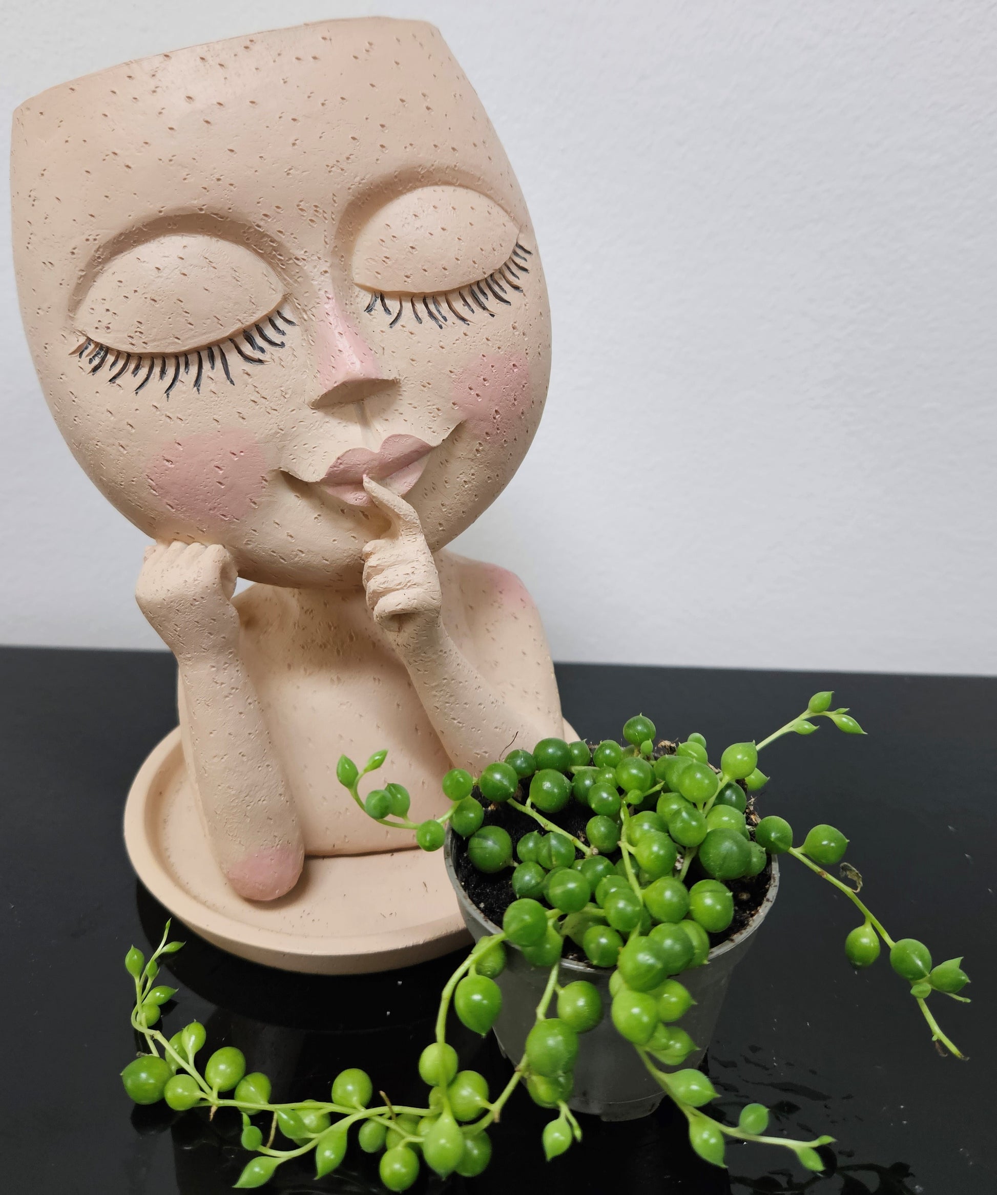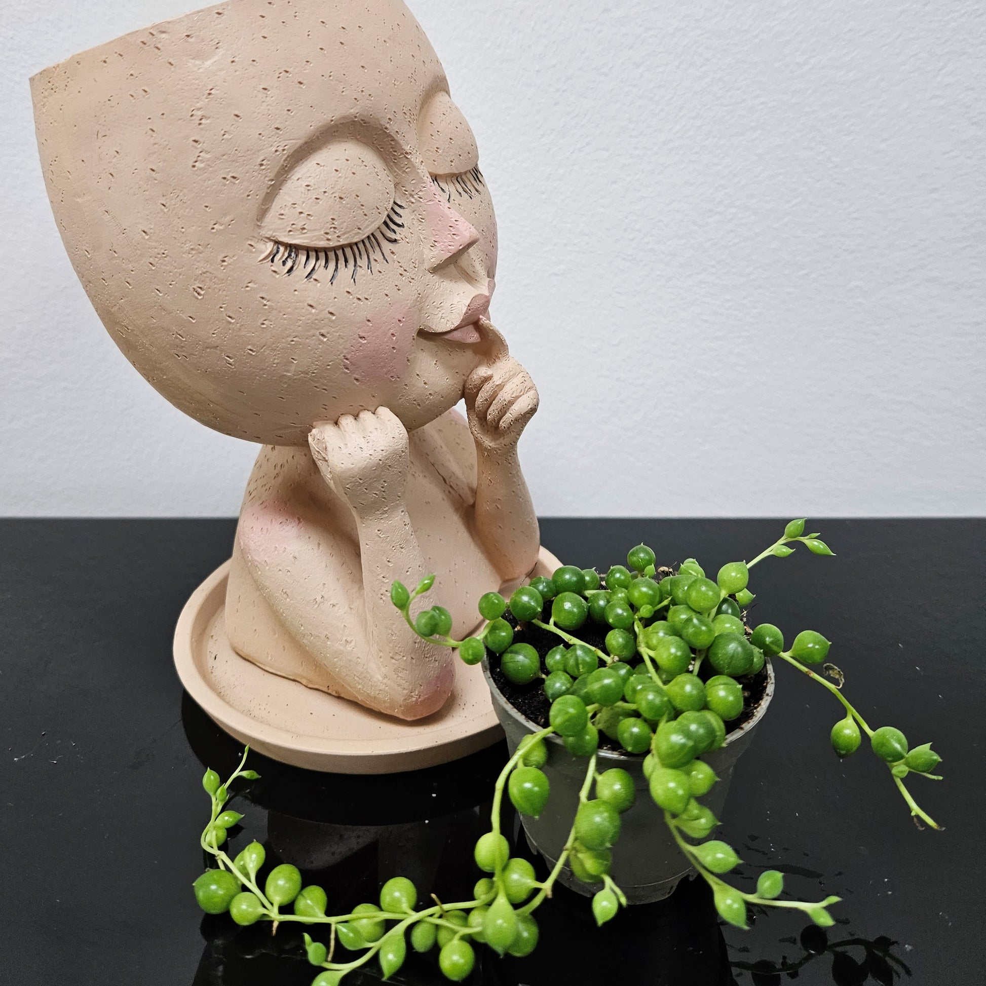 Happy Girl, statueta cu planta naturala Sirag de Perle