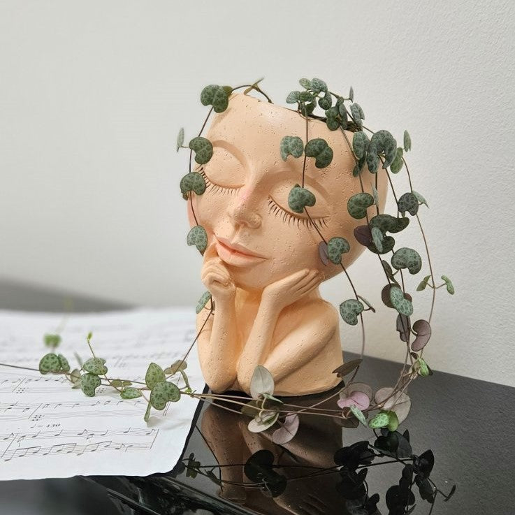 Ghiveci decorativ statuetă Flower Girl, ceramică
